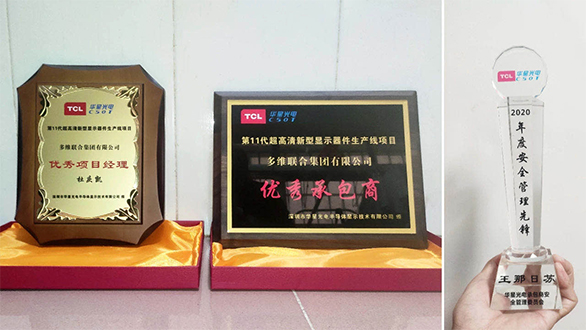 近日,TCL华星11代线超高清新型显示器件生产线项目(简称“t7项目”)迎来高光时刻,多维工程管理团队荣获优秀承包商等多项荣誉。多维项目管理团队自2019年7月进场施工,承建其逾12万平方米的金属墙面夹芯板系统。尽管在疫情期间受人力短缺、建设材料及物流等阻力,多维人还是凭借经验与实力再创造出新的华星速度。目前整体项目进入收尾阶段,距离量产更近一步。多维推行QHSE安全质量管理体系,培养了一支精良高效的工程管理队伍经验丰富的项目经理全面负责施工管理工作,多维坚持“客户优先”的服务导向,始终从客户角度想问题,解决问题。多维自2014年与TCL华星光电携手,从2014年深圳华星t2项目、2015年武汉华星t3项目、2017年武汉华星t4项目、深圳华星t6项目以及惠州华星模组项目,直到如今的深圳华星t7项目,多维多次荣获业主、总包的表彰。